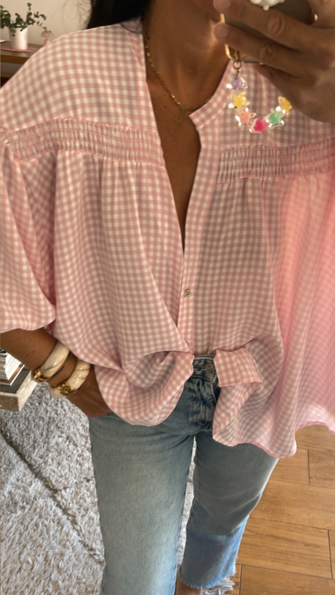 Blouse manches vichy rose