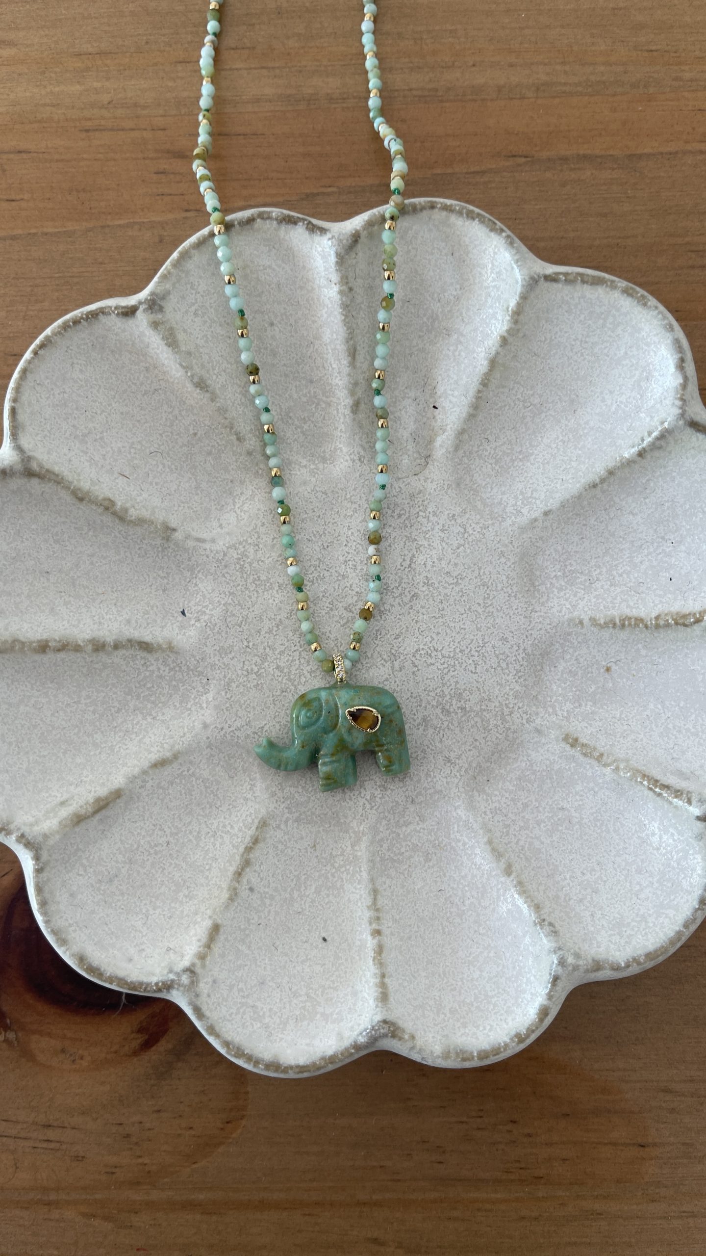 Collier éléphant green stone