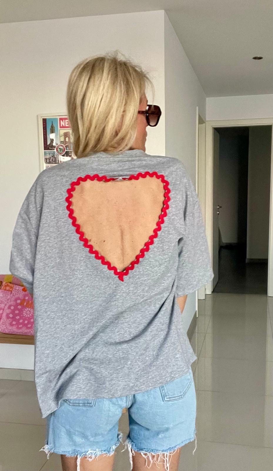 T shirt cœur dos gris