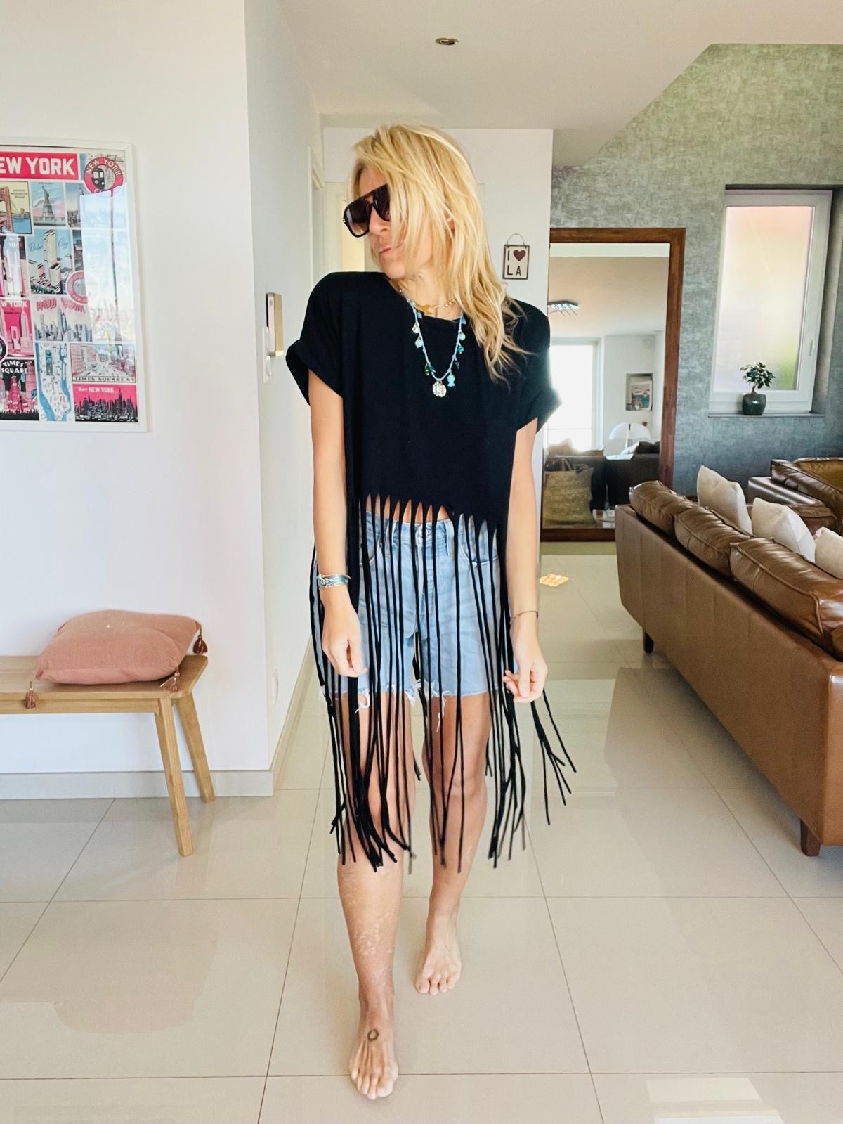 Top à franges noir
